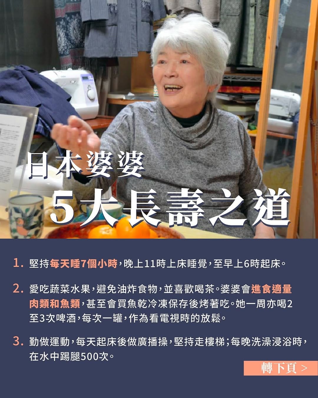 根據日本媒體報道,一位93歲來自岩手縣的老婆婆佐藤秀,在2023年9月體檢時,發現其身體年齡只有36歲,血管年齡更只有20歲;而BMI值為23.9(正常範圍)、體脂率25%。最值得關注的是,她的肌肉量高達44.6公斤。