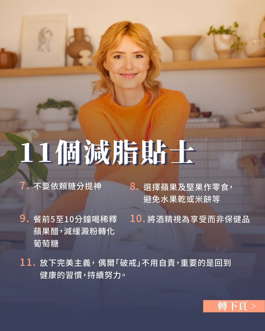 法國「控糖女神」Jessie Inchauspé 近日分享 11 種簡易減脂方法,強調透過控制血糖來達到健康減脂目標。