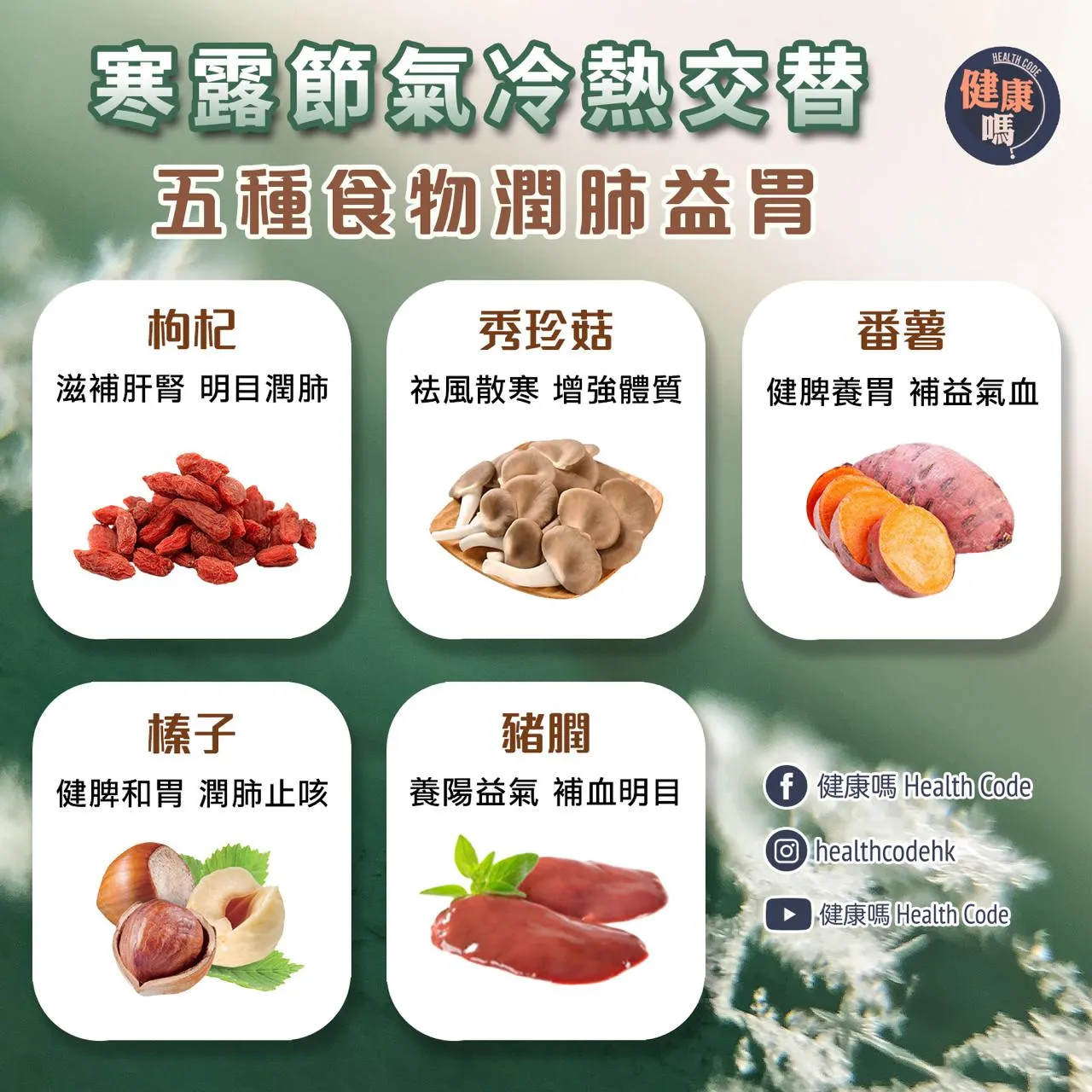 根據香港天文台資料,2024年寒露的時間為10月8日凌晨3時00分。由於寒露的到來,氣候由熱轉寒,萬物隨寒氣增長,逐漸蕭落,這是熱與冷交替的季節。在自然界中,陰陽之氣開始轉變,陽氣漸退,陰氣漸生,人體的生理活動也要適應自然界的變化,以確保體內的陰陽平衡。