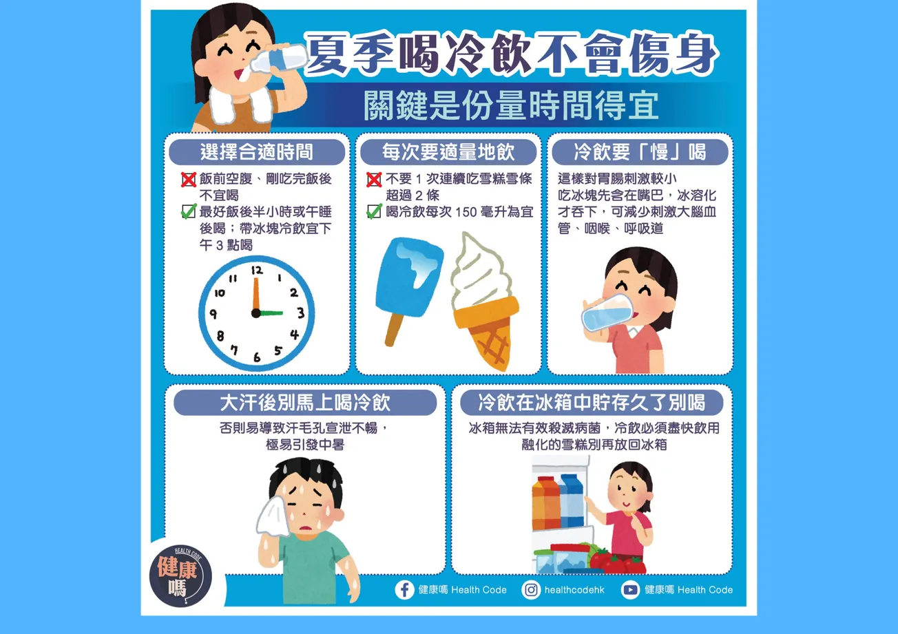 2、每次要適量地飲不要1次連續吃雪糕、雪條超過2條﹔喝冷飲每次以150毫升左右為宜,瓶裝飲料1次別超過半瓶。